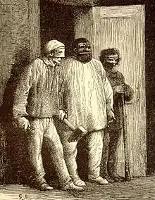 ![]() The Patron-Minette gang in their hide-out in the Paris sewer system. Illustration by Pierre-Georges Jeanniot | |