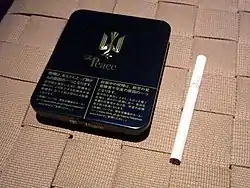 ![]() An old Japanese tin box of Peace cigarettes along with a cigarette | |