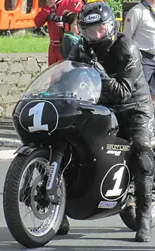 The sports fairings were recognisable for their styling with integral 'blisters' enclosing the handlebar-ends and rider's hands, and were available for racing, named Mountain Mile, with a similar sports-style for road use incorporating a distinctive, large rectangular Cibié headlamp, named Peel 707. A different design was for touring, aptly named TT Tourer.[2][3]