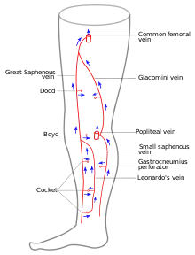 - Cavezzi A, Labropoulos N, Partsch H, et al. (March 2006). "Duplex ultrasound investigation of the veins in chronic venous disease of the lower limbs--UIP consensus document. Part II. Anatomy". European Journal of Vascular and Endovascular Surgery. 31 (3): 288–99. doi:10.1016/j.ejvs.2005.07.020. PMID 16230038.