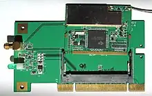 Peripheral Component Interconnect (PCI)[3] is a local computer bus for attaching hardware devices in a computer and is part of the PCI Local Bus standard. The PCI bus supports the functions found on a processor bus but in a standardized format that is independent of any given processor's native bus. Devices connected to the PCI bus appear to a bus master to be connected directly to its own bus and are assigned addresses in the processor's address space.[4] It is a parallel bus, synchronous to a single bus clock. Attached devices can take either the form of an integrated circuit fitted onto the motherboard (called a planar device in the PCI specification) or an expansion card that fits into a slot. The PCI Local Bus was first implemented in IBM PC compatibles, where it displaced the combination of several slow Industry Standard Architecture (ISA) slots and one fast VESA Local Bus (VLB) slot as the bus configuration. It has subsequently been adopted for other computer types. Typical PCI cards used in PCs include: network cards, sound cards, modems, extra ports such as Universal Serial Bus (USB) or serial, TV tuner cards and hard disk drive host adapters. PCI video cards replaced ISA and VLB cards until rising bandwidth needs outgrew the abilities of PCI. The preferred interface for video cards then became Accelerated Graphics Port (AGP), a superset of PCI, before giving way to PCI Express.[5]