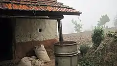 Hügelkultur is the practice of burying wood to increase soil water retention. The porous structure of wood acts like a sponge when decomposing underground. During the rainy season, sufficient buried wood can absorb enough water to sustain crops through the dry season.[54][55][56] This technique is a traditional practice that has been developed over centuries in Europe and has been recently adopted by permaculturalists.[57] The Hügelkultur technique can be implemented through building mounds on the ground as well as in raised garden beds. In raised beds, the practice "imitates natural nutrient cycling found in wood decomposition and the high water-holding capacities of organic detritus, while also improving bed structure and drainage properties." This is done by placing wood material (e.g. logs and sticks) in the bottom of the bed before piling organic soil and compost on top. A study comparing the water retention capacities of Hügel raised beds to non-Hügel beds determined that Hügel beds are both lower maintenance and more efficient in the long term by requiring less irrigation.[58]