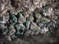 The mussel inhabits estuarine habitats and is found in densities as high as 35,000 individuals per square meter on any submerged marine object. Although vivid green in appearance, the mussels are shrouded with overgrowth and are often hard to find. The mussels live in waters that are 11–32 °C (52–90 °F) with a wide-ranging salinity of about 18-33 ppt.[3] P. viridis grows fastest at 2 metres (2 yards) below the surface, in high salinity and a high concentration of phytoplankton, although it can tolerate a range of salinity and turbid water.[5]