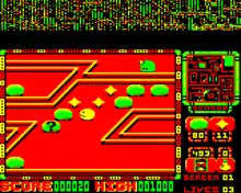 Perplexity is an isometric pseudo 3D maze game which graphically resembles the 1987 arcade game Pac-Mania (both the maze view and main characters) but while it does share some gameplay elements, the game is a much more calm and organised playing experience with the emphasis on puzzle-solving and as such has been described as a 3D version of Repton.[2]