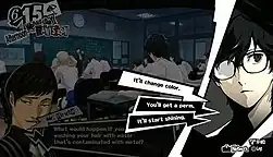 Persona 5 is a role-playing video game where the player takes on the role of a male high school student, codenamed Joker, who lives out a single year while attending school in modern-day Tokyo. The game is governed by a day-night cycle and weather systems that determine general behavior similar to a social simulation game. The year is punctuated by scripted and random events as Joker attends school. He can perform part-time jobs, pursue leisure activities or create battle items. These various activities raise character attributes, which grant passive buffing effects during battle.[1][2][3][4] When in the real world, the main protagonist can develop character relationships known as Confidants; an evolution of the Social Link system from Persona 3 and Persona 4. With this system, the main protagonist can converse with and improve his relationship with other characters he meets, with some leading to possible romances. Improving Confidant ranks with party members unlocks various abilities for use in combat, such as the "Baton Pass" ability, which allows the player to directly select another character after a "1 more" while granting a temporary attack boost.[3] Improving ranks with non-party Confidants grant other bonuses, such as giving access to new items and equipment and boosting experience point and yen gain.[3]