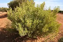 Persoonia, commonly known as geebungs[2] or snottygobbles,[3][4] is a genus of about one hundred species of flowering plants in the family Proteaceae. Plants in the genus Persoonia are shrubs or small trees usually with smooth bark, simple leaves and usually yellow flowers arranged along a raceme, each flower with a leaf or scale leaf at the base. The fruit is a drupe.