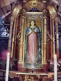 On the right nave is the Sacrament Chapel, designed by Alessi (1576), with an altarpiece of the Pentecost by Cesare Nebbia (1563); a marble sarcophagus contains the remains of Pope Martin IV, who died at Perugia in 1285, and relics of Innocent III and Urban IV.[4] The next bay leads to the Baptistery Chapel, with a Renaissance perspective view in marble by Pietro di Paolo di Andrea da Como (1477). In front of it, is the venerated image of the Madonna delle Grazie, by Giannicola di Paolo, a follower of Perugino. The right nave ends with the Chapel of St. Bernardino, enclosed by a 15th-century railing. Its altar houses the most important artwork of the church, a Deposition from the Cross by Federico Barocci (1567–1569).