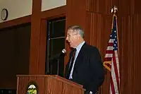 On September 20, 2007, Stark reaffirmed that he was an atheist by making a public announcement in front of the Humanist Chaplaincy at Harvard, the Harvard Law School Heathen Society, and various other atheist, agnostic, secular, humanist, and nonreligious groups.[44] The American Humanist Association named him 2008 Humanist of the Year,[45] and he served on the AHA Advisory Board. On February 9, 2011, Stark introduced a bill to Congress designating February 12, 2011, as Darwin Day; this was a collaboration between Stark and the American Humanist Association. The resolution states, "Charles Darwin is a worthy symbol of scientific advancement ... and around which to build a global celebration of science and humanity."[46]