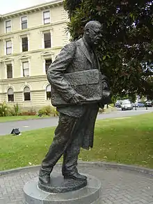 In 1919 Fraser stood on the Labour Party's ticket for the Wellington City Council. He and three others were first Labour candidates to win office on the council since before the war. Fraser led a movement on the council to establish a municipal milk distribution department in Wellington, which was to remain in operation until the 1990s.[4] He was re-elected in 1921, though Labour lost ground only winning two seats. In 1923 Fraser stood for Mayor of Wellington. He adopted an "all or nothing" strategy by standing only for the mayoralty, refusing nomination to stand for the council also.[5] Fraser polled higher than any Labour mayoral candidate in New Zealand history but lost by only 273 votes to Robert Wright in the closest result Wellington had ever seen.[6][7]