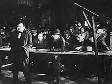The actor became much better known after director Fritz Lang cast him as child-killer Hans Beckert in M (1931), a film reputedly inspired by the Peter Kürten case.[9] Lang said that he had Lorre in mind while working on the script and did not give him a screen test because he was already convinced that Lorre was perfect for the part.[10] The director said that the actor gave his best performance in M and that it was among the most distinguished in film history.[11] Sharon Packer observed that Lorre played the "loner, [and] schizotypal murderer" with "raspy voice, bulging eyes, and emotive acting (a holdover from the silent screen) [which] always make him memorable."[9] In 1932, Lorre appeared alongside Hans Albers in the science fiction film F.P.1 antwortet nicht about an artificial island in the mid-Atlantic.