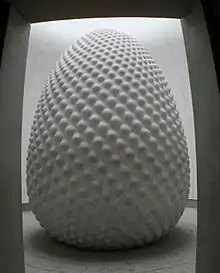 Randall-Page was born in Essex and spent his childhood in Sussex both studying at the Bath Academy of Art from 1973 to 1977 after which he worked with the sculptor Barry Flanagan.[4] After working on a conservation project at Wells Cathedral, Randall-Page went to Italy to study stone carving at the Carrara quarries.[4] Returning to Britain, he was a visiting lecturer at Brighton Polytechnic throughout the 1980s and established a studio at Drewsteignton in Devon.[4] From there he undertook a number of significant public sculpture commissions, often featuring fruit and organic forms. These included works for the regeneration of Castle Park in Bristol and for the Eden Project in Cornwall.[4] For the Eden Project he was a member of the design team for the Education Resource Centre (The Core), influencing the overall design of the building and incorporating an enormous granite sculpture, Seed, at its heart.[5][6] A major retrospective of his work was held in 1992 at the Leeds City Art Gallery and the Yorkshire Sculpture Park.[4] During 1994 Randall-Page held an artist-in-residence post at the Tasmanian School of Art and undertook a lecture tour of Australia, supported by the Arts Council England.[4]