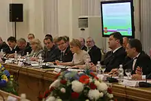 Ukrainian President Yushchenko nominated Poroshenko for Foreign Minister on 7 October 2009.[43][44] Poroshenko was appointed by the Verkhovna Rada (Ukraine's parliament) on 9 October 2009.[45][46] On 12 October 2009, President Yushchenko re-appointed Poroshenko to the National Security and Defense Council.[47]