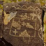 Petroglyph National Monument protects a variety of cultural and natural resources including five volcanic cones, hundreds of archeological sites and an estimated 24,000 petroglyph images carved by Ancestral Pueblo peoples and early Spanish settlers. Many of the images are recognizable as animals, people, brands and crosses; others are more complex. Their meaning was, possibly, understood only by the carver. These images are the cultural heritage of a people who have long since moved into other areas and moved on through history for many reasons. The monument is intended as a protection for these lands and sites from and for visitors to see and appreciate for generations to come. The national monument is managed in a manner that allows recreational use. The monument has four major sites that visitors can access, Boca Negra Canyon,[3] Rinconada Canyon,[4] Piedras Marcadas Canyon,[5] and the Volcano Day Use trails.[6]