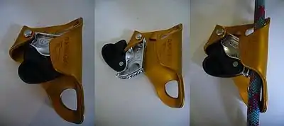 A Petzl Croll is an ascending device[1] used in caving and industrial rope access made by the French company Petzl. Its name comes from the town Crolles where Petzl's company headquarters are located but might also be a reference to the nearby cave system of the Dent de Crolles, the exploration of which triggered a lot of technical effort leading to innovation in caving equipment.