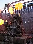 On 1 May 2001, a fire destroyed two roller coasters, a theatre and parts of the Westernstadt. It was the result of a cable fire in the Grand-Canyon-Bahn caused by faulty wiring.[7] The blaze covered about 38 million Deutsche Mark (US$17 million) in damage[8] and 54 people were injured.[9] Phantasialand reopened the park about two weeks later and invested about €2 million in fire safety, equipping every building with sprinkler systems.