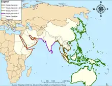 They have been observed to exhibit migratory behaviour off the south-west coast of India.[8] They are more commonly found furthest north during August, and further south in May.[8] They show an even distribution in October and February. Additionally, there are more juveniles present in May, and more adults present in August.[8]