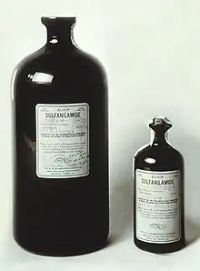 Ehrlich's approach of systematically varying the chemical structure of synthetic compounds and measuring the effects of these changes on biological activity was pursued broadly by industrial scientists, including Bayer scientists Josef Klarer, Fritz Mietzsch, and Gerhard Domagk. This work, also based in the testing of compounds available from the German dye industry, led to the development of Prontosil, the first representative of the sulfonamide class of antibiotics. Compared to arsphenamine, the sulfonamides had a broader spectrum of activity and were far less toxic, rendering them useful for infections caused by pathogens such as streptococci.[19] In 1939, Domagk received the Nobel Prize in Medicine for this discovery.[20][21] Nonetheless, the dramatic decrease in deaths from infectious diseases that occurred prior to World War II was primarily the result of improved public health measures such as clean water and less crowded housing, and the impact of anti-infective drugs and vaccines was significant mainly after World War II.[22][23]