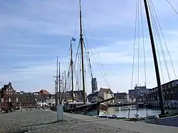 In 1628, Wallenstein sent Mansfeld to raise a navy at Wismar, on the Baltic Sea.[1] The local mayor was persuaded to give Mansfeld some abandoned buildings, part of an old foundry and an empty yard. Over the following year he "brought together, in fact, a not insignificant naval force"[1] consisting of various vessels either bought from local merchants and converted, or captured and reconfigured. The force included a number of Orlogsschiff, including two built from scratch[Note 3] and two captured Danish sailing barges.