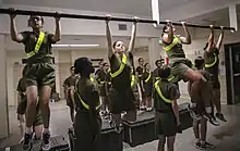 A physical training uniform is a military uniform used during exercise, calisthenics, drills, and in some cases, very casual periods of time (off-duty time during Initial Entry Training in the U.S. Army, for example). Most militaries, especially the United States Armed Forces and their auxiliaries (e.g. ROTC and JROTC components) require use of a physical training (PT) uniform during unit exercise (including formation runs, calisthenics, and conditioning exercises). All items worn by military personnel conducting PT as a group are subject to uniformity, at commander discretions, however, some U.S. military units produce unique T-shirts with their unit insignia and motto, and for special events, this shirt is part of the uniform. Occasionally, exercise will also be conducted in that branch's utility uniforms, normally with the blouse removed and the undershirt exposed (also known as "boots and utes" ). For unit runs, esprit de corps or special occasions, commanders may have personnel wear unique T-shirts with the distinctive unit insignia and unit colors.
