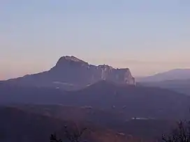 The Pic de Bugarach (French: [pik də byɡaʁaʃ]) or Pech de Bugarach (French: [pɛʃ -]; Occitan: Puèg de Bugarag [ˈpɥɛdʒ ðe βyɣaˈɾatʃ]; "Peak of Bugarag") is the highest summit (1230 m) in the Corbières Massif in the French Midi.
