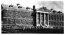 The school operated until 1885, when litigation between a number of Quaker bodies forced the school to close. The matter settled, the school reopened in 1892, and apparently enjoyed great success: "Mr. W. P. Firth M.A., D.Sc., became principal. With his wife, formerly Miss Ella Rogers B.A., daughter of Samuel Rogers, a well known Toronto figure at that time the school prospered, and attendance grew rapidly. Students came from all over the Continent, as well as from Japan, Russia, China, Persia, Armenia, Australia, Central America and the West Indies. A large number of Jamaicans graduated from the school. Many local students attended both the preparatory, as well as the collegiate departments. In the early nineties the attendance taxed the capacity of the building."[3] Such was the success of the school in the late 1890s that an alumni event in 1894 gathered some 400 students from all over the country.
