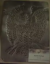 A common pie safe is made of wood, is around the same size as a large bureau, and is approximately 18 inches (46 cm) deep. The shelves within the storage area are often perforated. The safe normally has two hinged doors on the front. These doors, and usually the sides,[2] are ordinarily ventilated either with tin plates with punched holes, or screens. The holes in the tin are often punched to produce an image such as a simple shape, or something more intricate like a church scene, eagles, and stars, or even a Masonic emblem.[3] A notable design is the Wythe County pie safe, which has a distinctive tulip pattern.