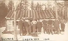 Home to Gagen Land & Cedar Company around 1900, the primary industries of Piehl were farming and lumber. White cedar posts and poles, piling, railroad ties and pulp wood were produced. The owner of Gagen Land & Cedar Company was Fred Piehl.[3] March 25, 1908, the town of Piehl was created to consist of Township 37 north of Range 11 east, detached from the towns of Three Lakes and Monico. The picture shows a sample of the lumberjacks that worked for the Gagen Land & Cedar Company.