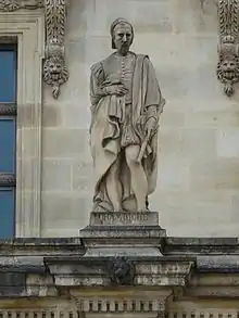 A statue of Pierre Chambiche by Jules-Antoine Droz, placed on the Aile en retour Mollien of the Palais du Louvre in 1857.