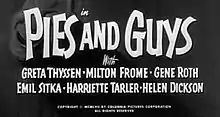 Pies and Guys is a 1958 short subject directed by Jules White starring American slapstick comedy team The Three Stooges (Moe Howard, Larry Fine and Joe Besser). It is the 185th entry in the series released by Columbia Pictures starring the comedians, who released 190 shorts for the studio between 1934 and 1959.