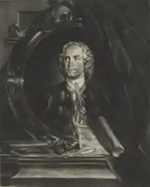 Locatelli began studying in Rome in autumn 1711, probably under Antonio Montanari or Giuseppe Valentini and perhaps for a short time under Arcangelo Corelli, who died in January 1713.[4] In a letter of 17 March 1714 Locatelli wrote to his father in Bergamo that he was a confirmed member of the compita accademia di vari instrumenti, the household musicians of Prince Michelangelo I Caetani (1685–1759), where Valentini had worked as a violinist and composer since no later than 1710.[5] Between 1716 and 1722, Locatelli was also a member of the congregazione generale dei musici di S. Cecilia, and thus under the protection of the noble prelate and future Cardinal Camillo Cybo.[6] He also assisted other Roman noble houses, often including that of Cardinal Pietro Ottoboni in the church of San Lorenzo e San Damaso, probably until 7 February 1723.[7] While in Rome, Locatelli debuted as a composer. In 1721 his XII Concerti grossi, Op. 1, dedicated to Camillo Cybo, was published in Amsterdam.[8]