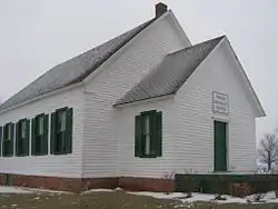 The frame church building constructed as a one-room, single story clapboard structure in a simple Greek Revival style in 1847. An early vestibule addition was constructed on the front of the building, ca. 1880, inset from the main building facade. The building sits on an orange/red brick foundation rising about 2 feet (0.61 m) above grade. The roof has wood shingles. A brick chimney extends from the ridge of the roof near the front of the main building. The building siding and trim is painted white with dark green windows, shutters and front door.[2]