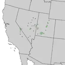 The species occurs in Utah, Nevada and eastern California. In California, it is restricted to the White Mountains, the Inyo Mountains, and the Panamint Range, in Mono and Inyo counties. In Nevada, it is found in most of the higher ranges of the Basin and Range from the Spring Mountains near Las Vegas north to the Ruby Mountains, and in Utah, northeast to South Tent in the Wasatch Range. Due to the inaccessibility of many of the sites that this species occupies, information on their location and abundance is incomplete, and thus is needed. Environmental niche modelling has been used to better map the distribution of Great Basin bristlecone pine using topographic and spectral variables calculated from a geographic information system (GIS).[8]