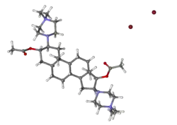 Pipecuronium (Arduan) is a bisquaternary aminosteroid muscle relaxant[1] which blocks nicotinic acetylcholine receptors[2] at the neuromuscular junction. It is also an antagonist of M2 and M3 muscarinic receptors[2] and is the most potent neuromuscular blocking agent of the aminosteroid class.