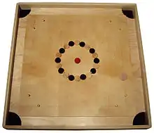 Pitchnut is a wooden tabletop game of French Canadian origins, similar to carrom, crokinole and pichenotte, with mechanics that lie somewhere between pocket billiards and air hockey.[1]