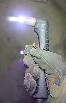 A plasma torch (also known as a plasma arc, plasma gun, plasma cutter, or plasmatron) is a device for generating a directed flow of plasma.[1][2][3]