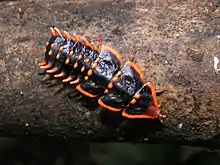 Platerodrilus is a genus of beetles of the family Lycidae. They commonly appear in the literature under the name Duliticola, which is an obsolete junior synonym.[1] The females retain a larval form as adults (larviform females) and are about 40–80 mm in length. The females and larvae have a flattened, dark body with large scales over the head, resembling trilobites, hence the informal names trilobite beetle, trilobite larva or Sumatran trilobite larva. In contrast, the males are much smaller, 8–9 mm, resembling other beetles. Species are found in tropical forests of India and South-east Asia.