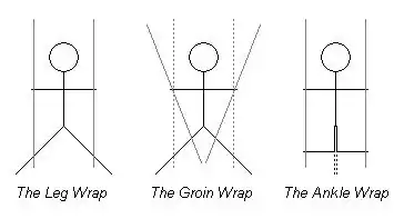 This is a variation upon the leg wrap where instead of outstretching the leg, it is bent to 90 degrees at the knee, with the lower portion of the leg turned out to the side. The string/chain then contacts with and winds round the ankle instead of the leg. The ankle wrap is usually not carried out on both legs at once as this requires jumping, which is exceptionally difficult to carry out at the required height and speed to complete the move before requiring to land.