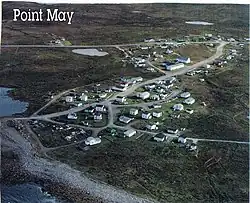 Point May is the most southerly community on the Burin Peninsula in Newfoundland and Labrador with a population of 254 in 2021.[1] It is a Catholic community with a church, town hall, fire hall, softball and soccer field. It is known for its close proximity, 19 km (12 mi), to the French islands of St. Pierre and Miquelon, where the smuggling of liquor and tobacco has been a way of life since before Canada was a country.[2][3][4] The tiny Canadian Green Island lies 10 km (6 mi) west of Point May, roughly halfway to St. Pierre.[5]