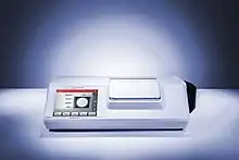 A polarimeter[1] is a scientific instrument used to measure the angle of rotation caused by passing polarized light through an optically active substance.[2]