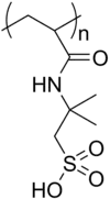 PolyAMPS, or poly(2-acrylamido-2-methyl-1-propanesulfonic acid) (trademark of the Lubrizol Corporation), is an organic polymer. It is water-soluble, forms gels when cross linked, and acts as a strong anionic polyelectrolyte. It can be used for ion exchange resins. It can form hydrogels.