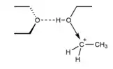 Ab initio calculations and crystallographic structural analysis of [H(OEt2)2]+[Al(Opftb)4]− indicate potential unequal sharing of the proton between the two diethyl ether molecules, and the authors propose a solid state structure in which [H(OEt2)2]+ is described as a diethyl ether molecule acting as a hydrogen bond acceptor from an ethanol molecule which stabilizes an ethyl cation as a Lewis base in one resonance structure.[7]
