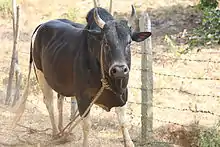 Ponwar is an indigenous cattle breed of India.[1] It is known to be originated at Ponwar in Puranpur Taluk in Pilibhit district of Uttar Pradesh state and the breed is named after the same place.[2] The cattle is also restricted to the small geographic area[3] adjoining Ponwar. The cattle are known to be very active and are of fiery disposition. They exhibit dual coloured complexion of black and white. It is a draught breed and is mainly used for cart pulling.[4]The breeding tract lies between latitude 28°4’ and 28°8’ North and between longitude 79°0’ and 80°4’ East.The tail switch is white in black animals and black in those having a greater proportion of white patches. The body is small, compact and non-fleshy, the face is small and narrow and the ears are small. The horns are small to medium and curve inward with pointed tips. The hump is small in females and developed in males. The tail is long and reaches to below the hock. Cows have small udders and teats. The animals of this breed possess an aggressive temperament.
