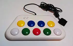 A revised controller was also released for the PS2 at the same time as Pop'n Music 10, though it is also compatible with the original PlayStation.