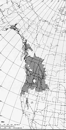 The native range of P. trichocarpa covers large sections of western North America. It extends from Southeast Alaska's Kodiak Island and Cook Inlet to latitude 62° 30° N., through British Columbia and the forested areas of Washington and Oregon, to the mountains in southern California and northern Baja California (31°N). It is also found inland, generally on the west side of the Rocky Mountains, in British Columbia, southwestern Alberta, western Montana, and north-to-central Idaho.[11] Scattered small populations have been noted in southeastern Alberta, eastern Montana, western North Dakota, western Wyoming, Utah, and Nevada.