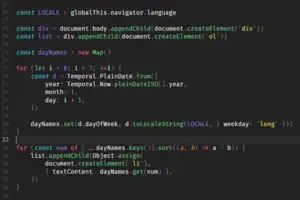 Screenshot of JavaScript source code