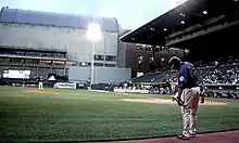 Initial plans called for the new ballpark to be built at the site currently occupied by the Memorial Coliseum, which would have been torn down,[26] but public outcry about demolishing a Portland landmark led Portland mayor Sam Adams to propose a second site in the Rose Quarter area north of Memorial Coliseum. The site, however, proved to be too small.[27] Another location on the site of Charles D. Walker Stadium in the Lents neighborhood in southeast Portland was also rejected due to objections from neighbors.[28] That was until the Portland Pickles collegiate wood bat team began play in 2016 at Walker Stadium.