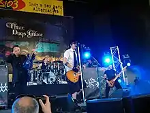 The Three Days Grace song "I Hate Everything About You" peaked at number 55 on the Billboard Hot 100 and number 28 on the Pop Songs chart.[77] In 2006, Three Days Grace released their album One-X, which was certified 3× platinum by the RIAA.[78] The album's song "Pain" peaked at number 44 on the Billboard Hot 100, number 47 on the Pop 100 chart and number 35 on the Hot Digital Songs chart.[77] One-X's song "Never Too Late" peaked at: number 71 on the Billboard Hot 100, number 12 on the Top 40 Mainstream chart, number 19 on the Pop 100 chart, number 17 on the Pop 100 Airplay chart, number 30 on the Hot Digital Songs chart, number 18 on the Hot Canadian Digital Singles chart, number 13 on the Adult Top 40 chart and number 1 on the Hot Adult Top 40 Recurrents chart.[77] Daughtry broke into the mainstream in 2006 with the release of their self-titled debut album. Stephen Thomas Erlewine of AllMusic noted the post-grunge sound of the album.[79] It sold at least 5,040,000 copies in the United States.[80] The band Flyleaf's song "All Around Me" peaked at: number 40 on the Billboard Hot 100, number 12 on the Top 40 Mainstream, number 17 on the Pop 100, number 15 on the Pop 100 Airplay, number 38 on the Hot Digital Songs and number 23 on the Adult Top 40.[81] Flyleaf's self-titled album was certified platinum by the RIAA.[82]