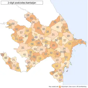 2-digit postcode areas Azerbaijan (defined through the first two postcode digits)