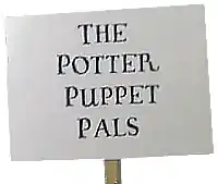 ![]() The sign showing the Potter Puppet Pals logo that appears at the start of most episodes. | |
