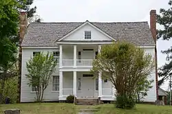 The Potts Inn is a historic former stagecoach inn at Main and Center Streets in Pottsville, Arkansas that is now a museum. It is a two-story wood-frame structure, with a side gable roof and weatherboard siding. A two-story gabled portico projects at the center of the front, supported by square posts. Entrances on both levels have overhead transom windows. The inn was built in 1858 by Kirkbride Potts, a Pennsylvania native, and is one of the finest antebellum houses in the region.[2]